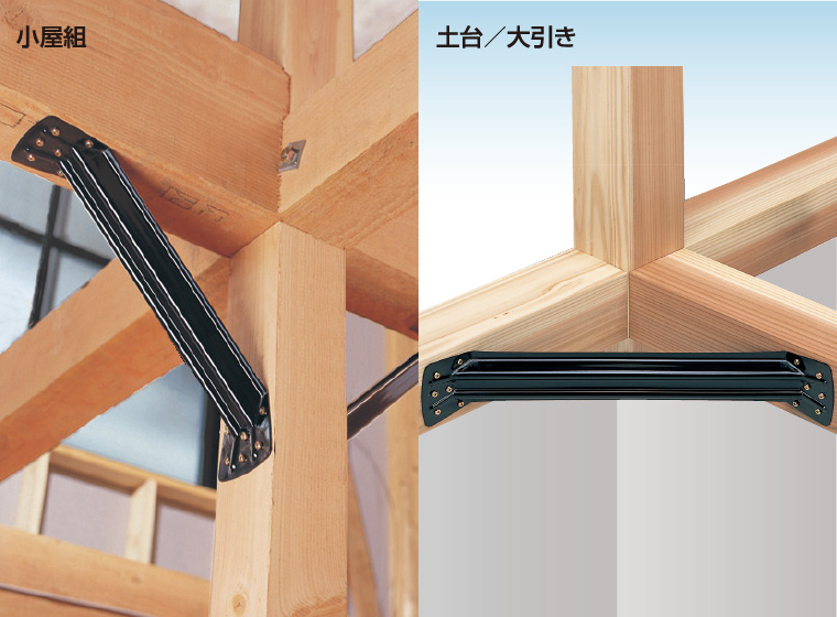 強度不足の土台や小屋組に追加する火打ちとして既存住宅への施工に配慮した専用設計です。