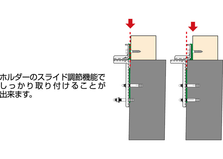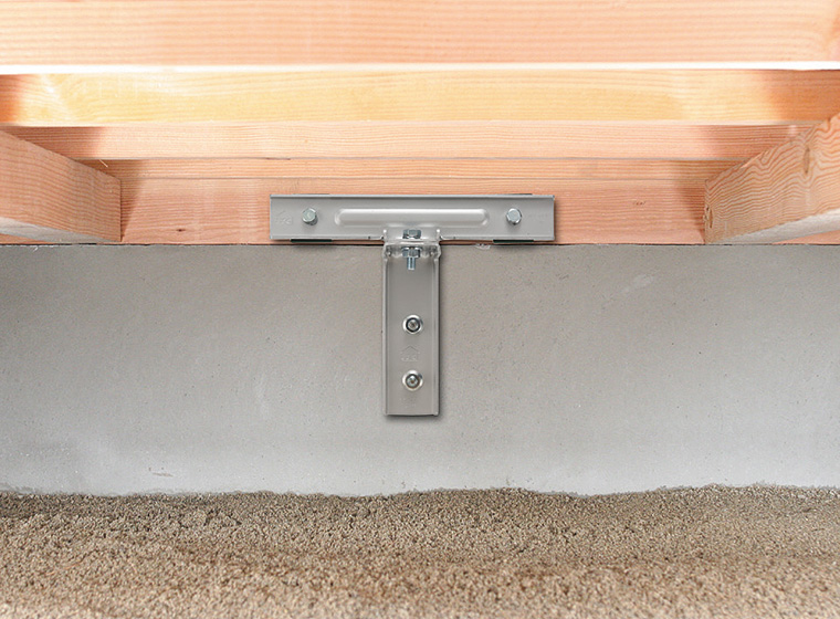 既存住宅への施工に配慮した専用設計です。土台と基礎を高い強度でしっかり固定し、縦の突き上げや横揺れから土台の浮き・ズレを防ぎます。